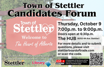 Co-hosted by the Stettler Board of Trade and the Stettler Public Library, this forum is a chance to learn more about the candidates and make an informed choice this election.